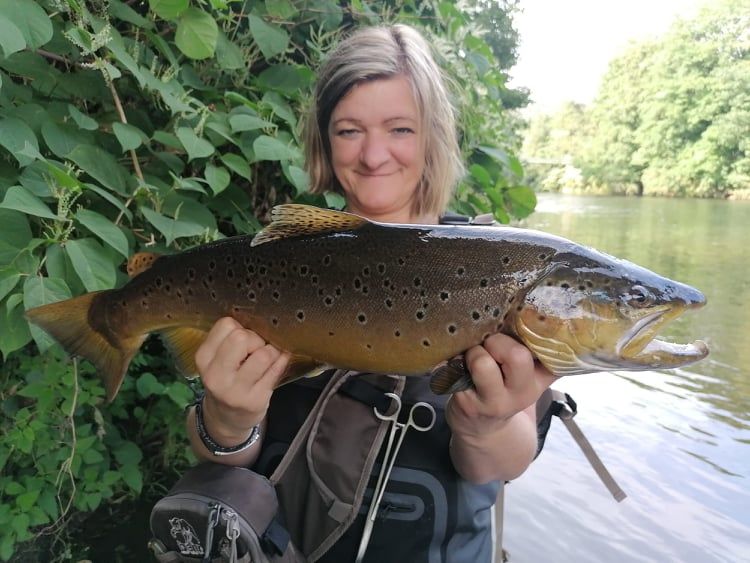 Sie konnte bereits viele Süßwasser und Meerwasser Rabauken verhaften. Auf dem Bild ist ihr aktueller Bachforellen PB von 62 cm zu sehen.