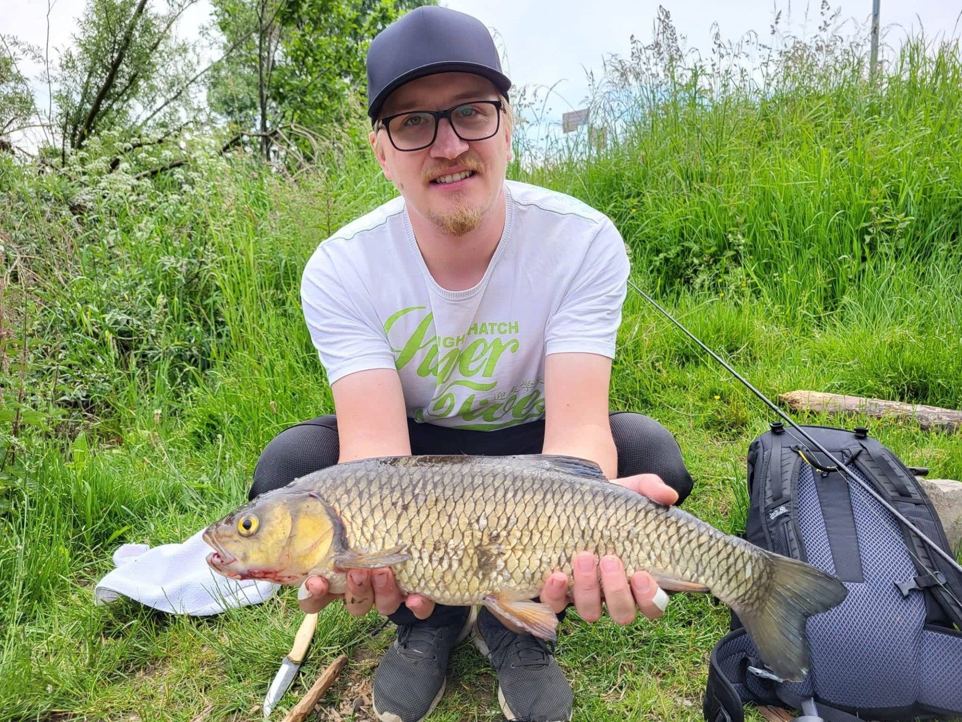 Dominik hat diesen 55 cm großen Döbel auf einen DUO Ryuki Spearhead 50 s in der Ruhr in Essen überlisten können. Fettes, fettes Petri.